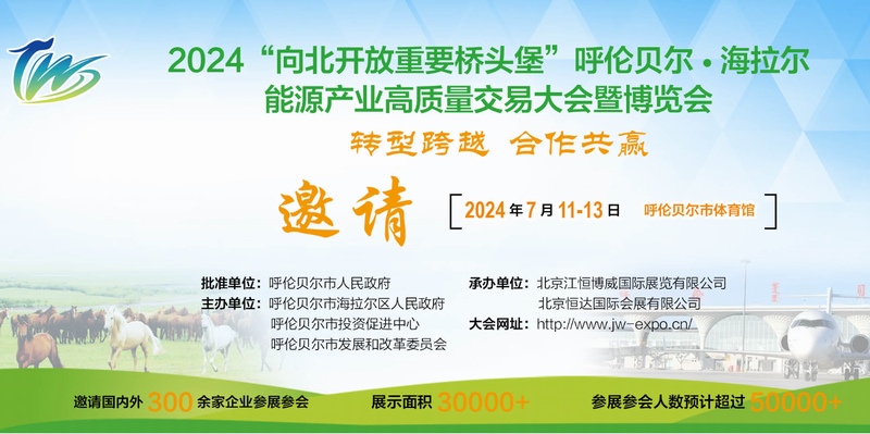 为落实习近平总书记经济绿色发展思想,响应国家共建绿色“一带一路”倡议,加快绿色产业升级,发挥呼伦贝尔市海拉尔区可持续绿色发展和经济社会建设,推动绿色能源暨碳中和领域的国际合作,带动呼伦贝尔市经济发展,由呼伦贝尔市海拉尔区人民政府、呼伦贝尔市发展和改革委员会、呼伦贝尔市投资促进中心主办,北京江恒博威国际展览有限公司/北京恒达国际会展有限公司于2024年7月11号-13号,在呼伦贝尔市体育馆策划举办“2024“向北开放重要桥头堡”呼伦贝尔•海拉尔能源产业高质量交易大会暨博览会”,本届大会以“转型跨越、合作共赢”为主题,大会将邀请国际组织、行业协会、能源投资公司、绿色发展公司、新兴能源企业和碳中和高质量机构等。共谋供给侧结构性改革环境下能源互联、一带一路、科研创新,绿色发展等产业发展的进与退,为促进呼伦贝尔市海拉尔区绿色持续发展和消费革命建言献策。